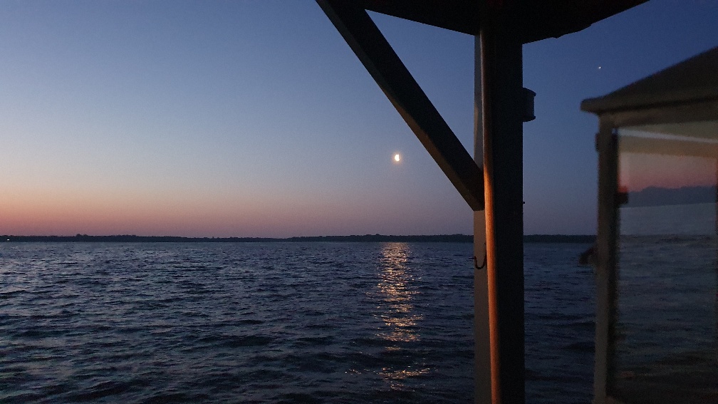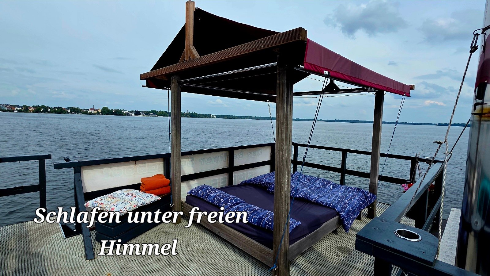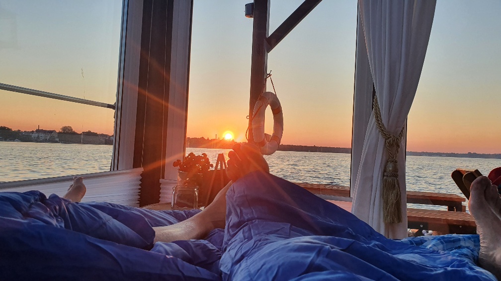 Wir reservieren für maximal 4 Personen eine Übernachtung auf dem Saunaboot -Angebot "Vollmond". Es sind zwar weitere Schlafplätze auf den Terrassen vorhanden aber diese sind