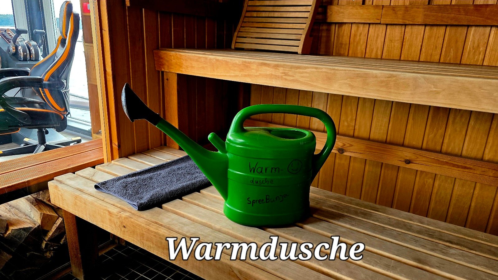 Im Innenraum kann die Couch zu einer Schlafcouch (160x200) ausgeklappt werden. Zusätzlich können 2 Feldbetten aufgestellt werden. Die Restwärme der Sauna wirkt hierbei als "Ofen" für den gesamten Innenbereich über Nacht.
